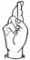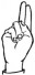 На ћирилици написано ХРАНИМИР ЗЕЧЕВИЋ састоји се из 15 слова [?]. Исписано ћириличном једноручном азбуком за глувонеме:
